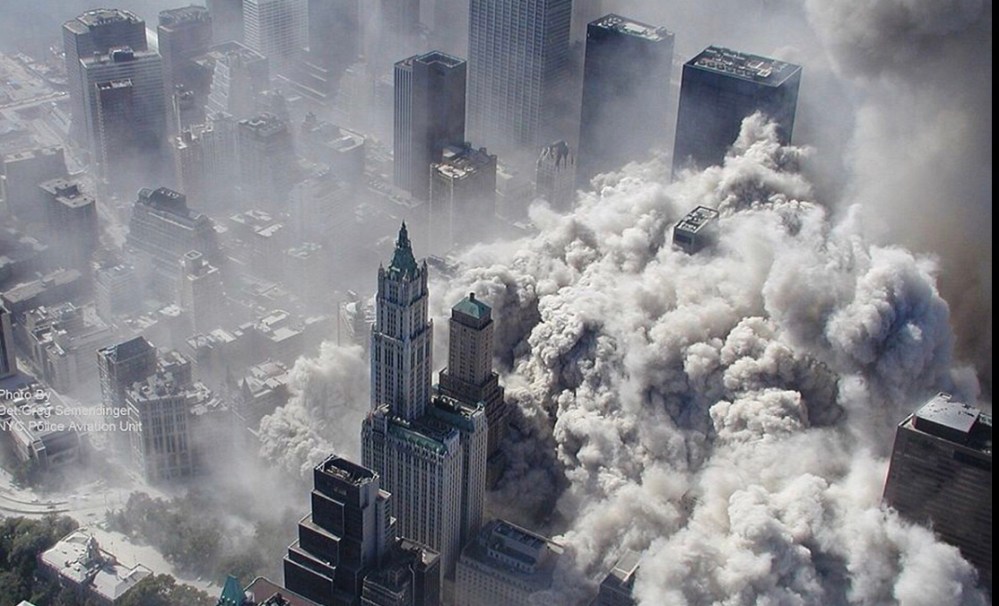 These three photos are really depressing for me. The first one shows how fast this event spread and how many people it effected. The second photo is firefighters searching this area, this shows how much rubble there was and how much the city lost. Finally, the third photo is my favourite. After the first plane collided with the one tower you can see the second one moving towards the second tower in the distance. This is probably the most depressing photo because the photographer knew it was coming and knew that this would have a huge impact but couldn’t do anything about it.