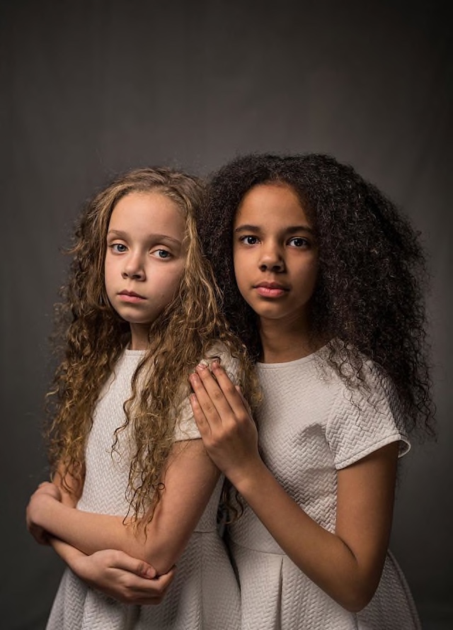 This photo represents diversity. Surprisingly these two girls are sisters of the same mother of fathers. Actually they are twins obviously not identical. I really like this photo because it shows how our world has changed it represents that the society now excepts a more diverse family.